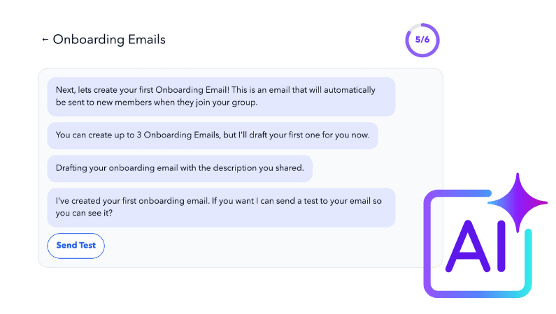 Let the AI assistant generate your onboarding emails, design your group logo, structure your client experience, and configure your features — all tailored to your coaching model.